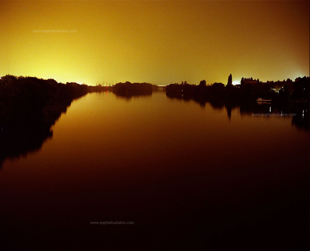 lumiËres ! un essai photographique sur la pollution lumineuse. La Seine au pont de Bezons, Hauts de Seine (92). Octobre 2005.